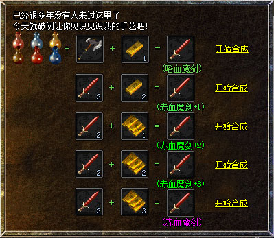 3、材料需要2把罗刹(赤月恶魔、玄武、白日门半兽统领等爆)